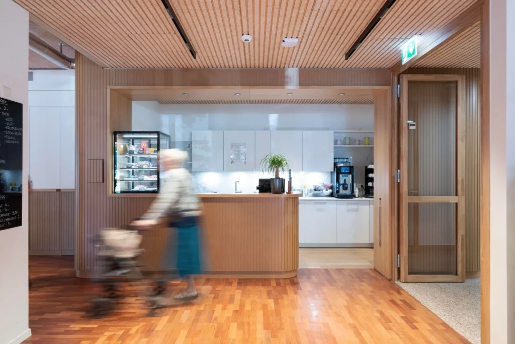 La résidence se distingue par un vaste rez-de-chaussée ouvert et lumineux, où se concentre la vie des résidants, des familles et du personnel. Les récents travaux ont favorisé la mobilité, les interactions et les coins chaleureux, sans oublier la sécurité et le confort. Les espaces ont été pensés selon les vœux des résidants eux-mêmes, pour que chacun se sente à l’aise.